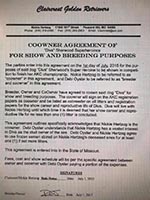 WHO would sign a co-ownership agreement allowing someone else to dictate terms and breeding rights of a dog YOU OWN and BRED on their own letterhead?